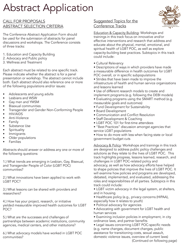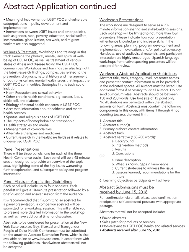 Join us in amplifying the skills and professional networks of individuals working with the LGBT POC community. In Our Own Voices seeks proposals for active and engaging workshops and/or panels to include in our conference programming!